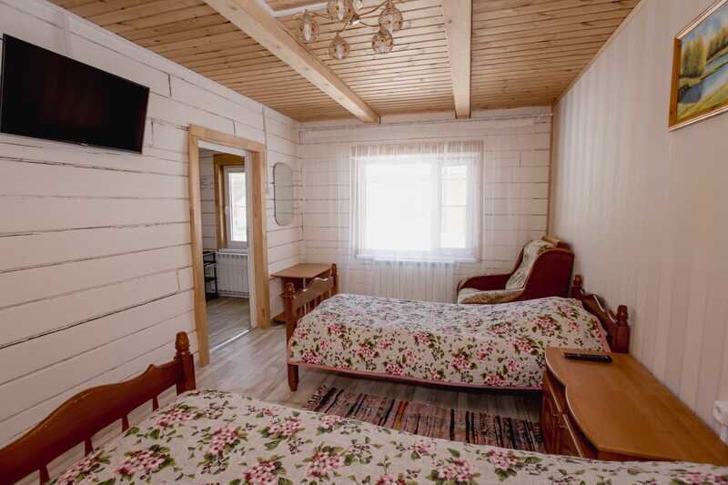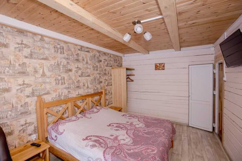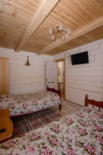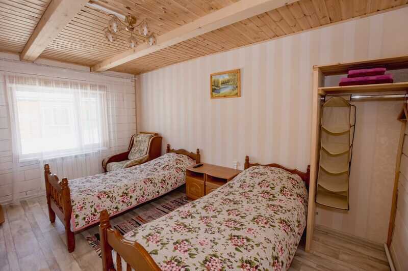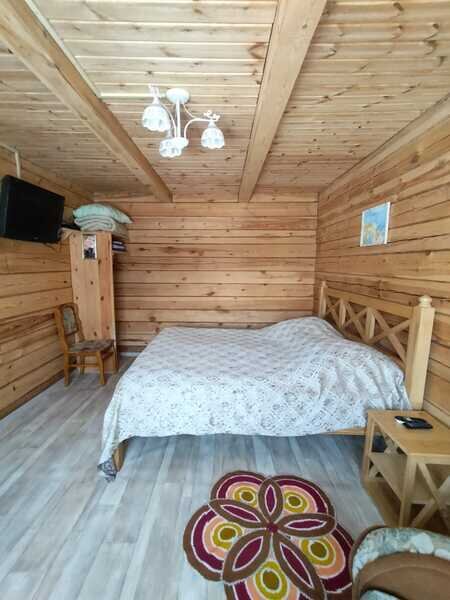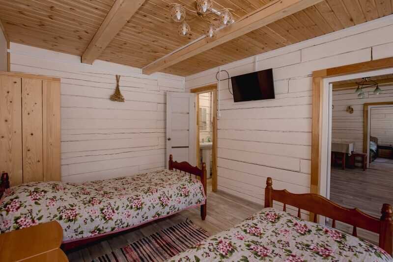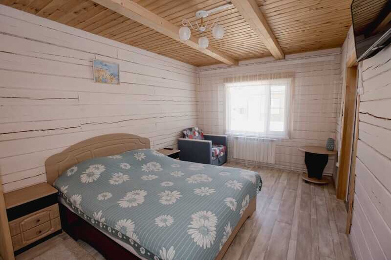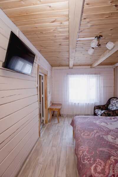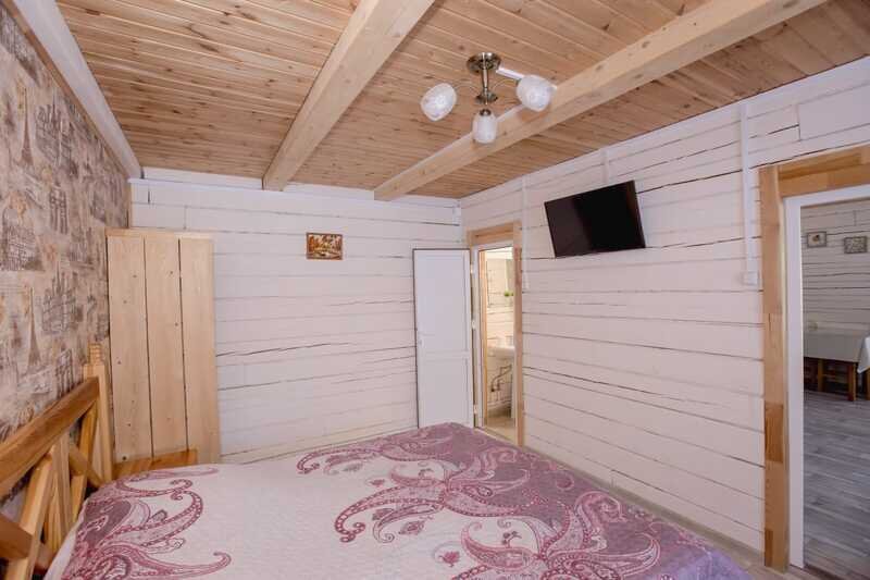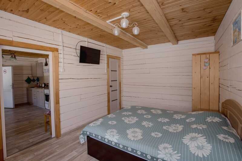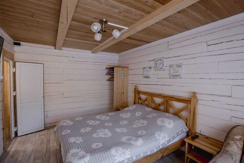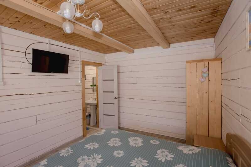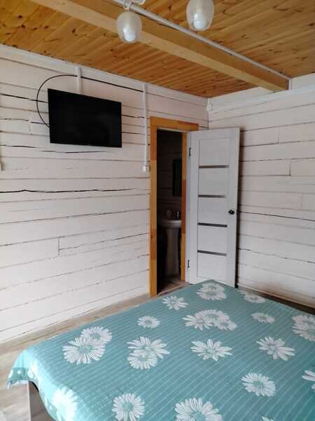 Домики можно арендовать как целиком, так и выбрать понравившиеся номера площадью 16м2 в домах №3 и №4, каждый из которых имеет собственный санузел, телевизор, удобные кровати с ортопедическими матрасами, постельное бельё и средства гигиены. Есть бесплатный Wi-Fi.