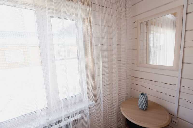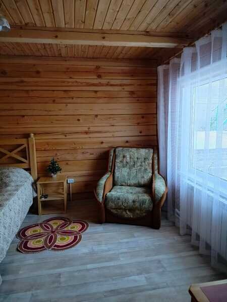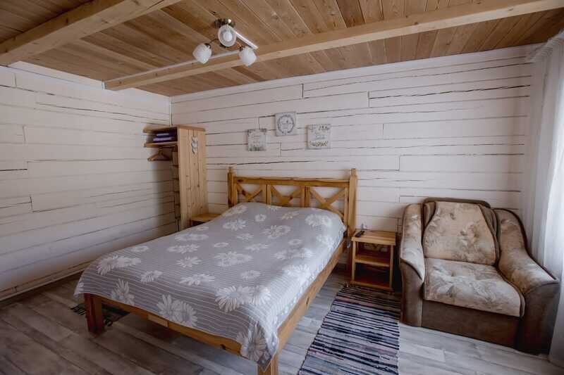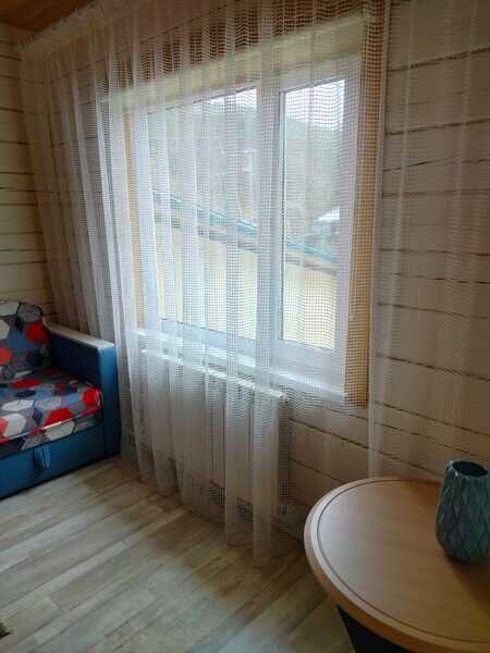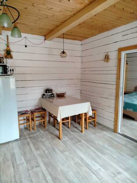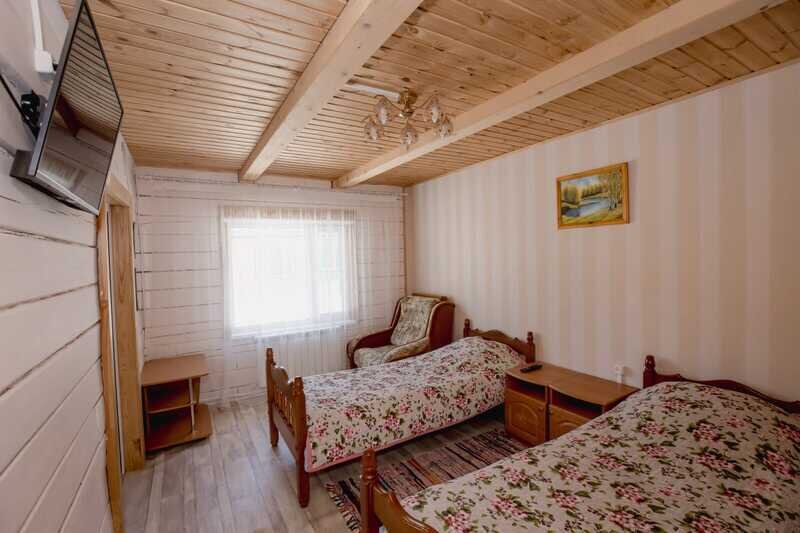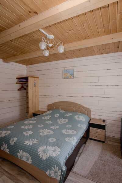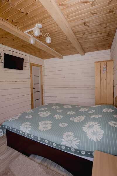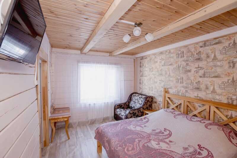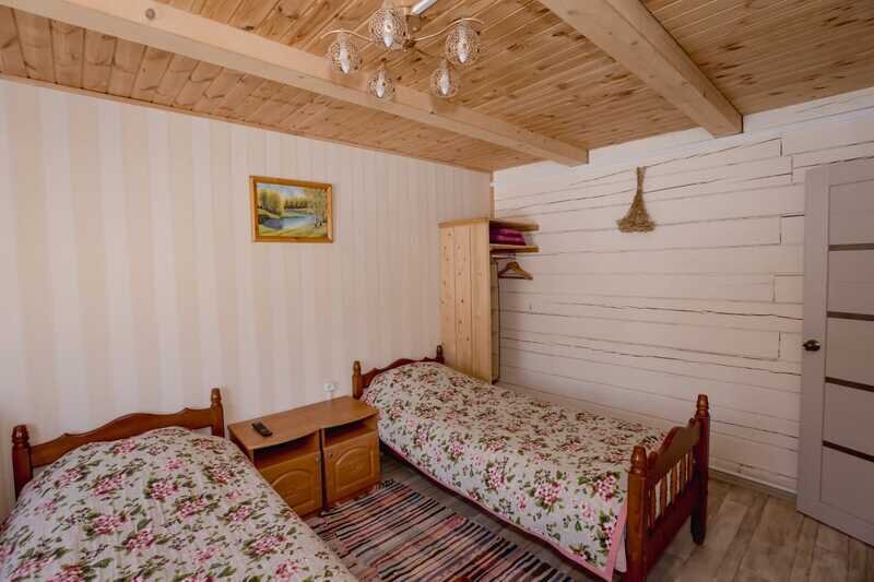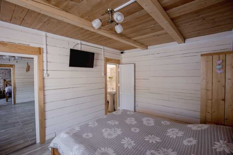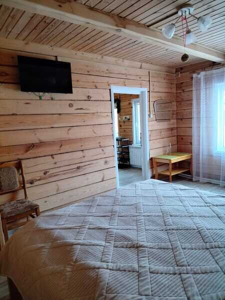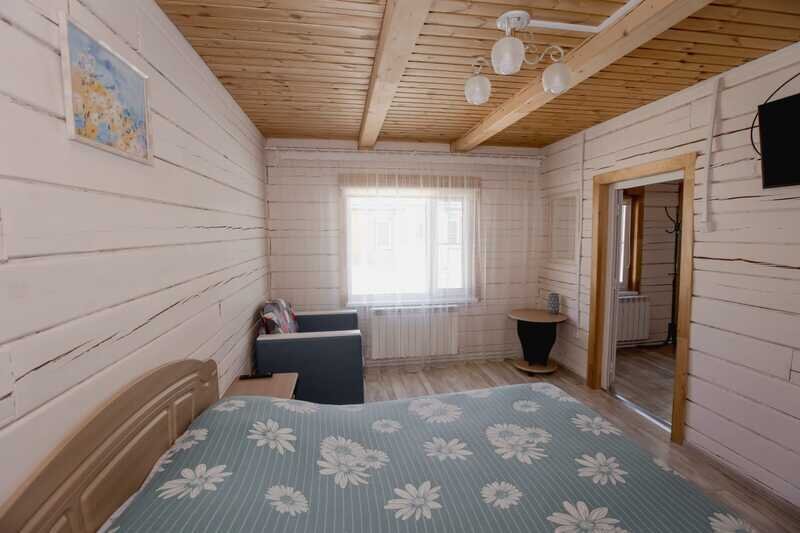 Домики можно арендовать как целиком, так и выбрать понравившиеся номера площадью 16м2 в домах №3 и №4, каждый из которых имеет собственный санузел, телевизор, удобные кровати с ортопедическими матрасами, постельное бельё и средства гигиены. Есть бесплатный Wi-Fi.