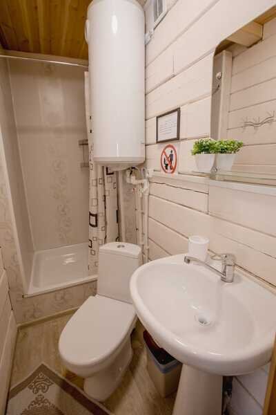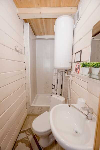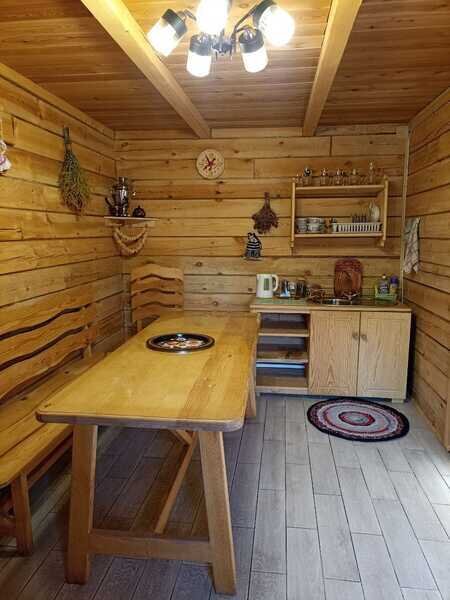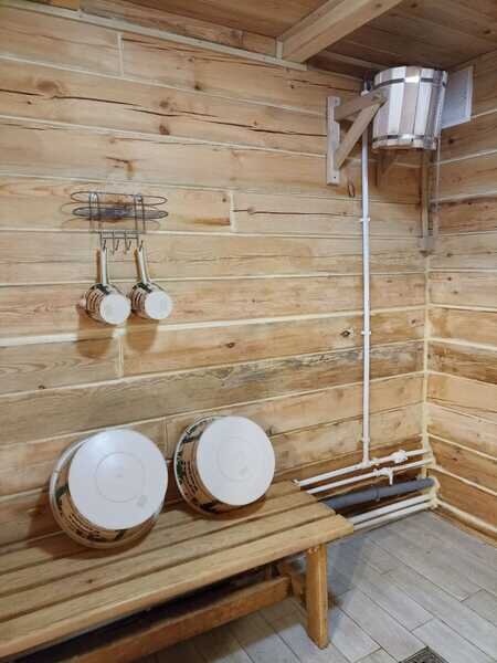 В бане понравится как любителям русской бани (влажный пар), так и любителям сауны. Обливное ведро окатит холодной водицей после парной!