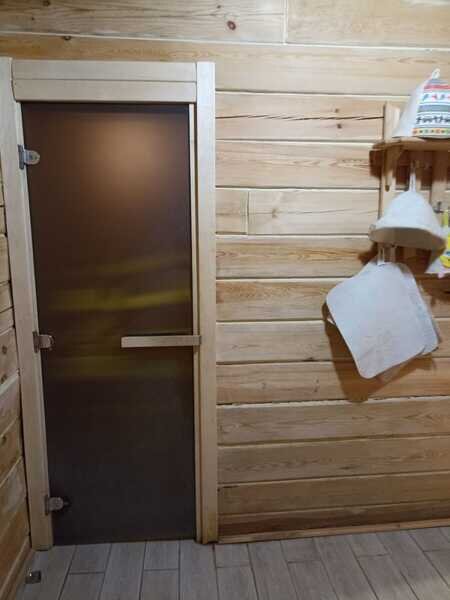 Инфраструктура: простыни, шапочки, обливное ведроБаня построена из соснового бруса, отделана осиновой вагоночкой. Свежий запах дерева!