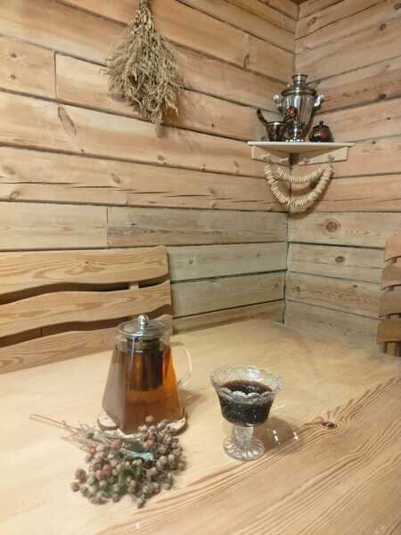 Включены чай из горных алтайских трав, мёд, простыни, шапочки. Веник берёзовый или дубовый.