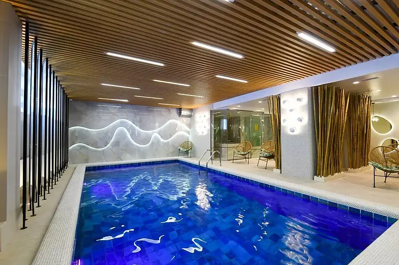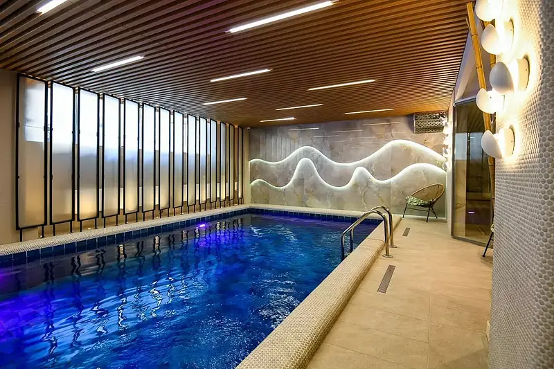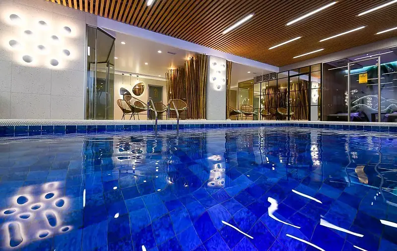 Бассейны в отельном комплексе «На Камушках»: бассейн с термальным комплексом в SPA-центре на территории соседнего корпуса 5* отеля.
