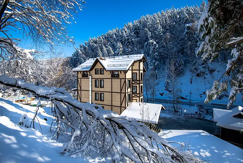 Путешествие с семьейотель рядом с природойОтель нам очень понравился, уютный, тихий, с красивыми видами из окон и с веранды. От речки доносится приятное журчание воды. Расположен подальше от шумной курортной зоны (куда приятнее прогуляться пешком, а потом вернуться в тишину и покой отеля), ближе к природе. Воздух чистый и пахнущий хвоёй. Из минусов: внизу под верандой персонал отеля устроил курилку, так что периодически эта вонь доносилась и до нас. И обратите внимание! Отель не заселяет с детьми младше 14 лет! Нас это устраивает, но семьям с маленькими детьми нужно выбирать другие отели.