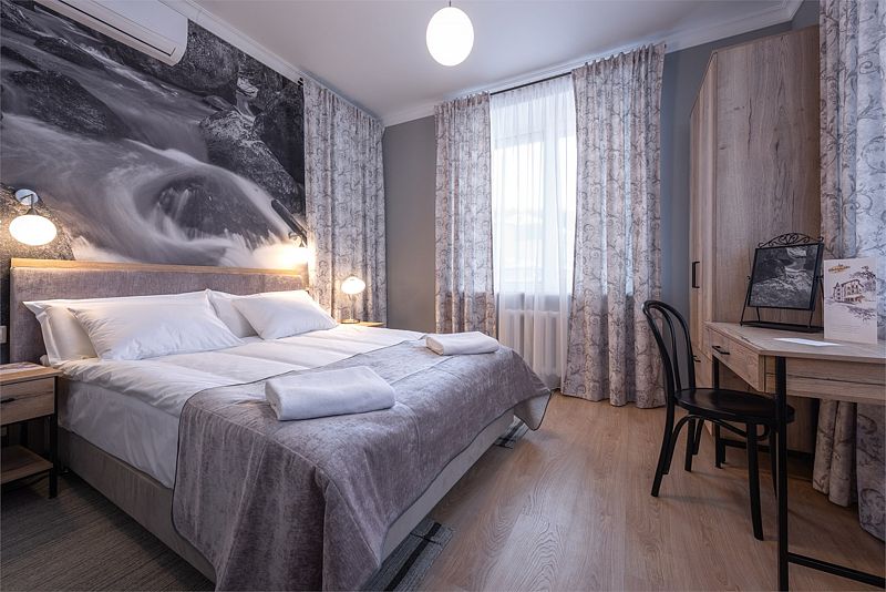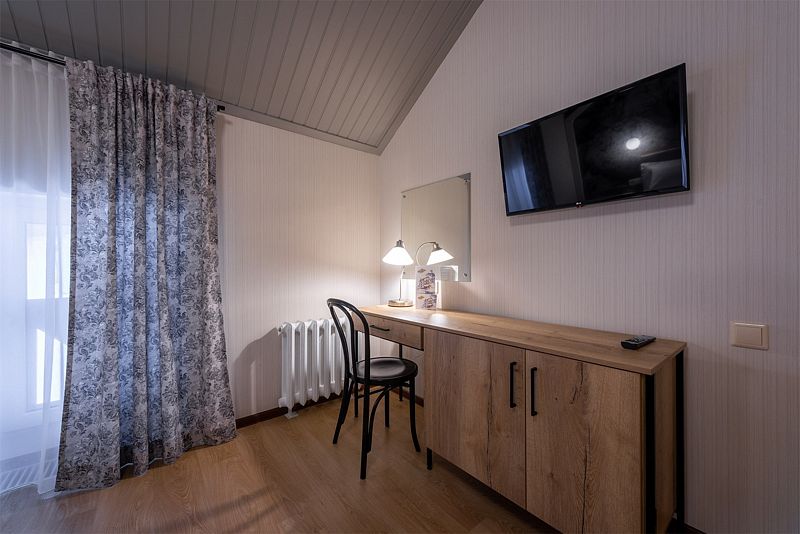 Состоит из небольшой прихожей, комнаты, санузла с душем. В номере возможно комфортное размещение двух гостей.
