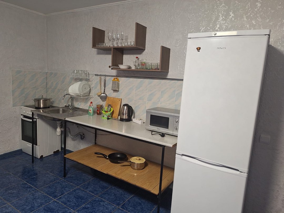 Двухэтажный домик: 4 спальни, зал, кухонный уголок (холодильник, микроволновка, чайник). Душ, туалет в доме.