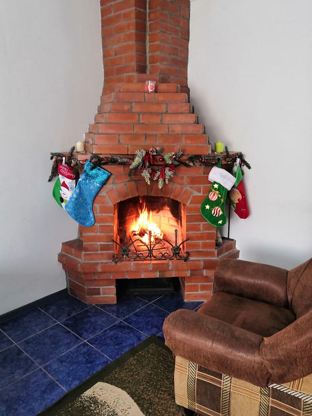 Белый дом с камином