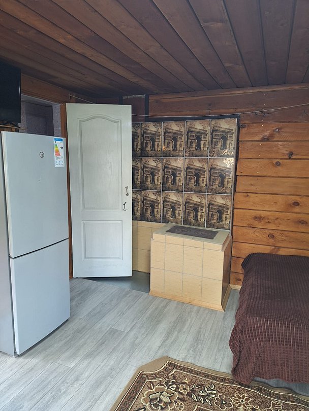 Номер расположен в 1-этажном летнем доме, который рассчитан на 2 номера. У каждого номера отдельный вход, терраса общая. На террасе холодильник и чайник.