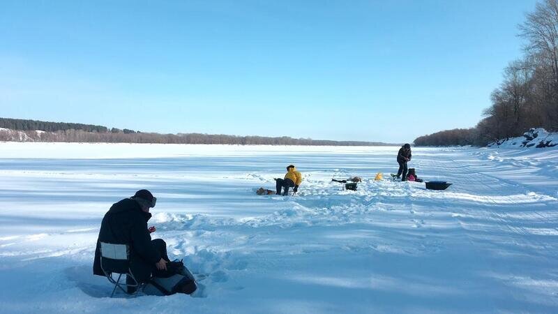 На удаленные точки — зимовальные ямы, которые находятся в 3-7 км от базы в районе деревни Духовая, станции Родина, протоки Соплякова, Черепенинская, Духовая, где ловится крупная щука, окунь, крупный лещ и сазан, доставляем на снегоходе «Буран» в санях.