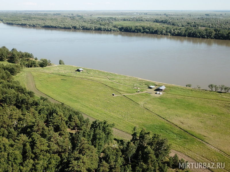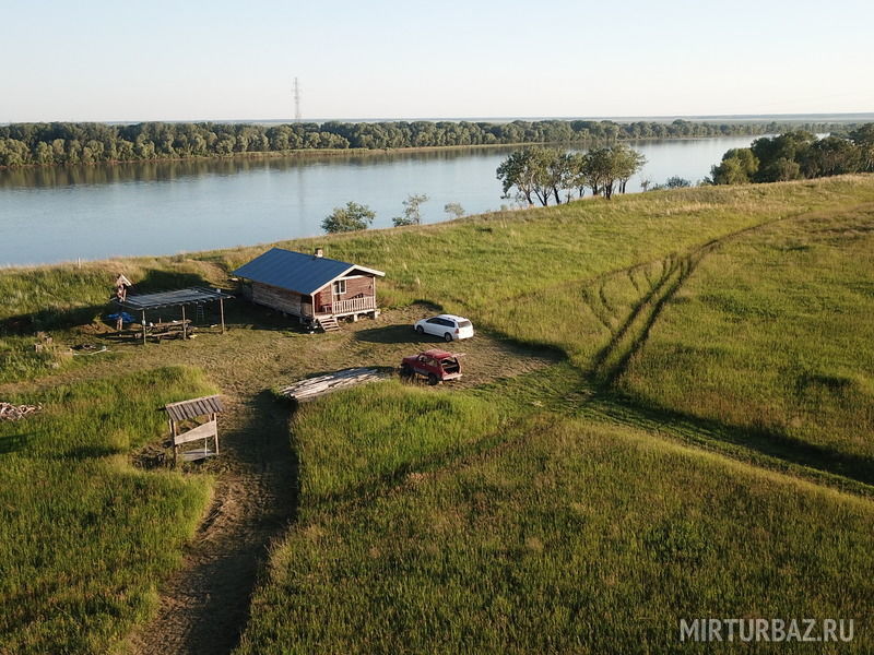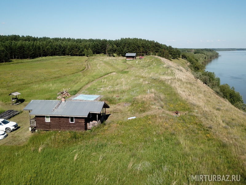 Домик расположен на высоком берегу, с которого открывается великолепный вид на реку Обь.