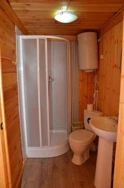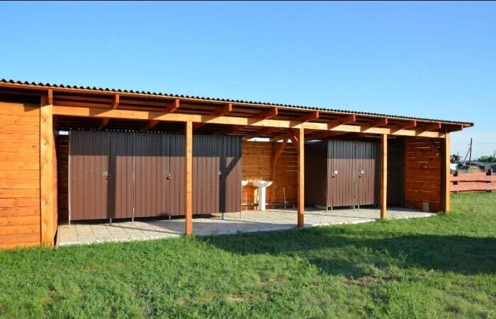 На территории базы есть санузел с душами и унитазами. Пользоваться могут им только гости базы «Радуга».
