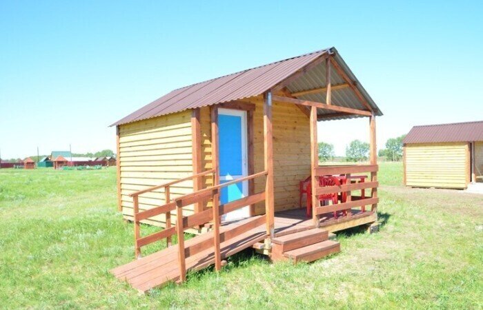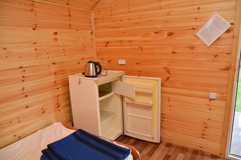 Ухоженное и чистое пространство с аккуратными скромными домиками. Они оснащены мягкими кроватями, постельным бельем, чайником и холодильником. Хоть удобства и находятся на улице, они комфортные и обустроены хорошей сантехникой. А в категории Люкс ванная комната расположена прямо в доме.