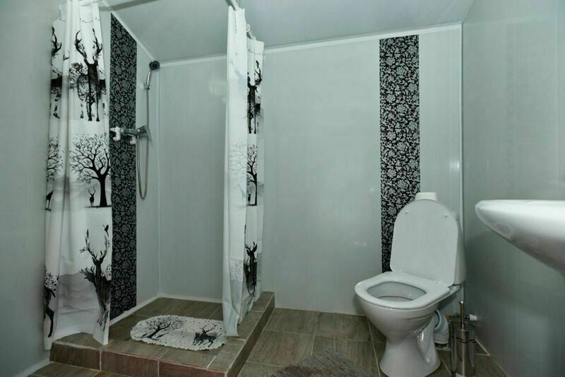 В номере туалет, умывальник. Душевые на территории и входят в стоимость проживания.