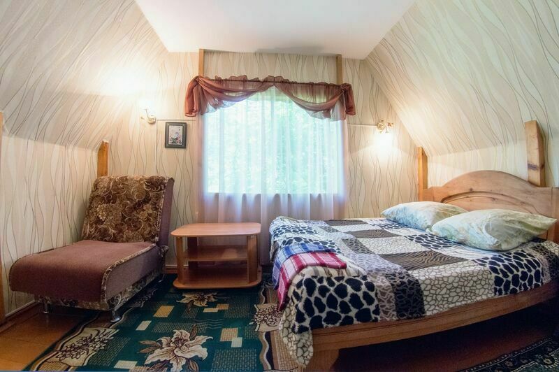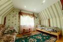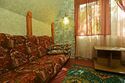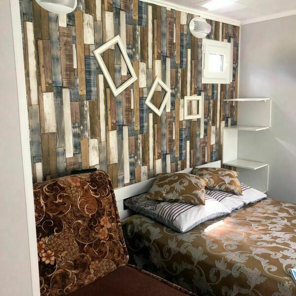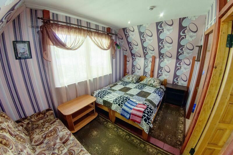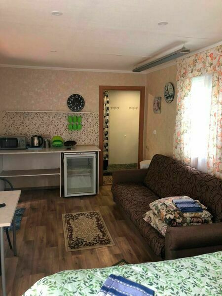 Одна кровать, диван кровать, столик, чайник, чайные пары, коврик, вешалка, зеркало. Душевая комната, умывальник, отопления, розетки, электричество
