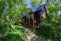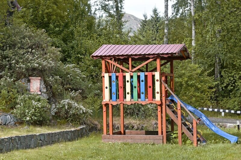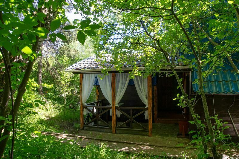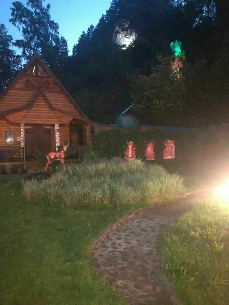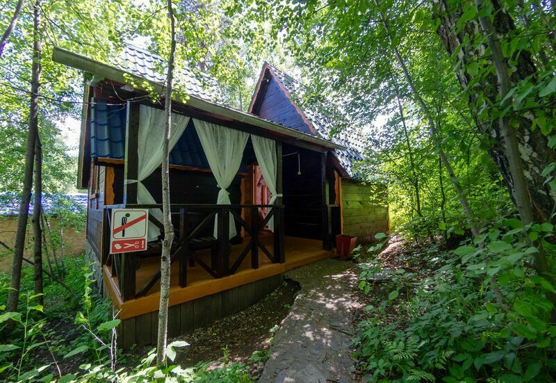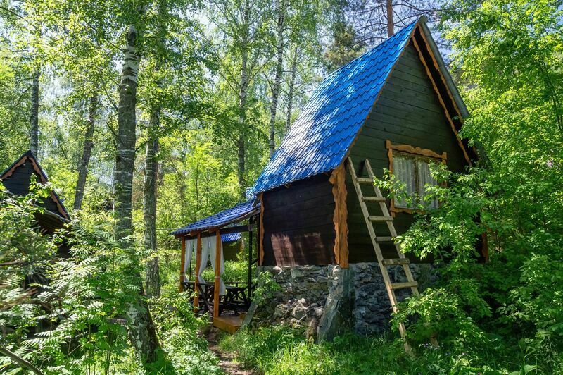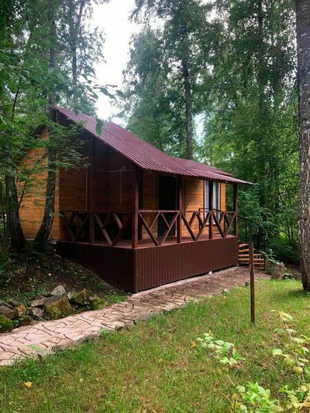 Находится напротив водопада, бани, в центре базы, в зеленой зоне. С видом на поляну и водопад. Инфраструктура в шаговой доступности.
