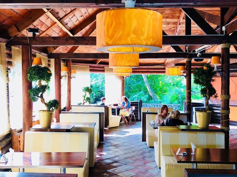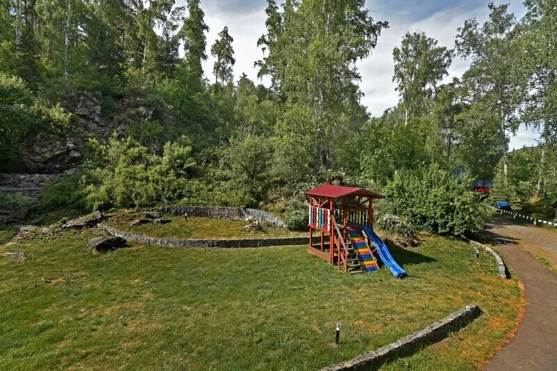 Здесь же находятся: два пруда, наполненных горной чистой водой, небольшой детский городок, кафе и автостоянка.