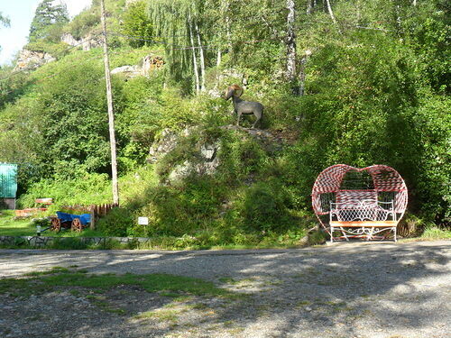 Следующая остановка – два расположенных рядом друг с другом объекта: Мраморная пещера и Скала шаманов. По преданию в пещере тысячу лет жил алтайский шаман, дух которого до сих пор находится здесь. Недалеко от пещеры расположено одно из удивительных и загадочных мест Горного Алтая – это огромная черная скала с плоской вершиной, «Скала шаманов». Предание гласит, что в древние времена на ее плоской вершине стояло святилище, а под скалой раз в несколько лет собирались алтайские шаманы на совместные камлания.