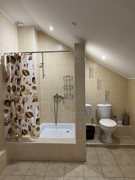 В номере двуспальная кровать, диван (140 см). Чайная комната — в холле на 2 этаже.
