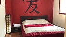 Авторский номер в японском стиле с цветущей сакурой на стенах, японскими картинами и самурайскими мечами. Возможное размещение 4 человека.