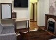 Однокомнатный номер с электрокамином. В интерьере цветочные фотообои, камин.