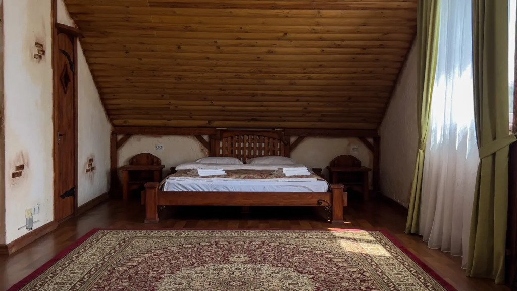 Отделка номеров выполнена с использованием натурального материала — дерева. Пол ковролин. Теплый пол. Номера расположены на 1 этаже.