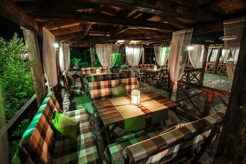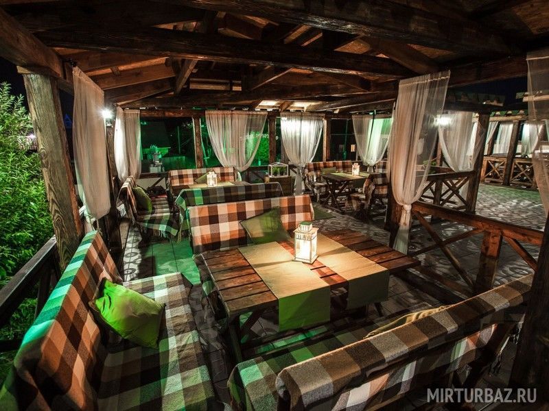 На территории есть открытый бассейн с подогревом, бассейн для малышей до четырёх лет, бар у бассейна, ресторан, зона для барбекю, беседки, детская юрта, спортивные и игровые площадки, а также бесплатная парковка.