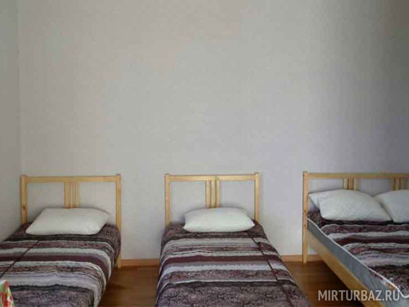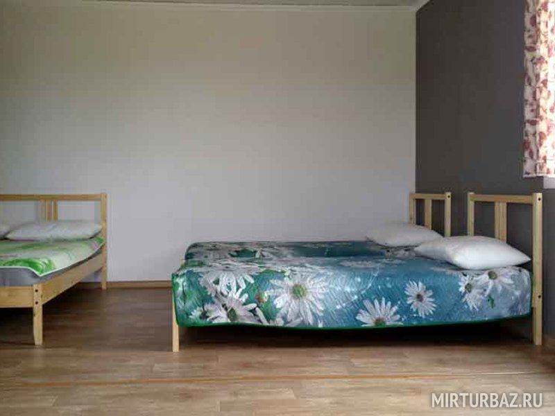 №8. В номере четыре спальных места. Одна двуспальная и две односпальных.