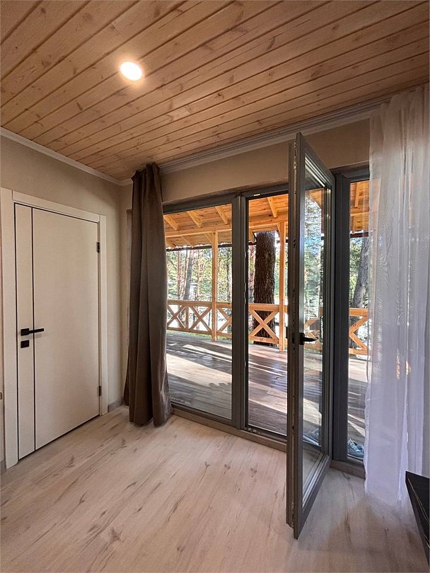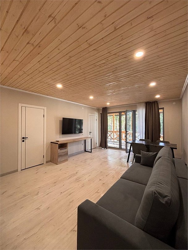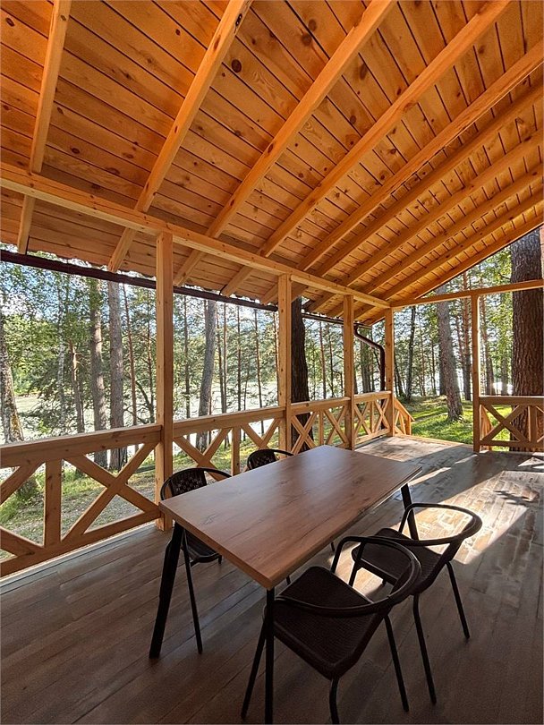 В номере: прихожая гостиная: вешалка, стол, обеденный стол, стулья, диван, телевизор; кухонная зона: холодильник, микроволновая печь, эл. чайник, набор посуды две спальные комнаты: прикроватные тумбочки, шкаф (в одной из спален два шкафа) большая терраса (стол, стулья) (номера могут отличаться друг от друга своей комплектацией) Санузел: туалет, умывальник, душ, фен, пол с подогревом Вид корпусов: отдельно стоящий деревянный дом с панорамными окнами, с террасой с видом на реку и собственной мангальной зонойУслуги и удобства