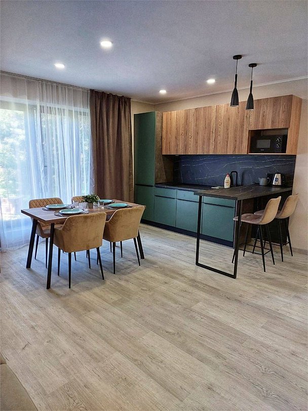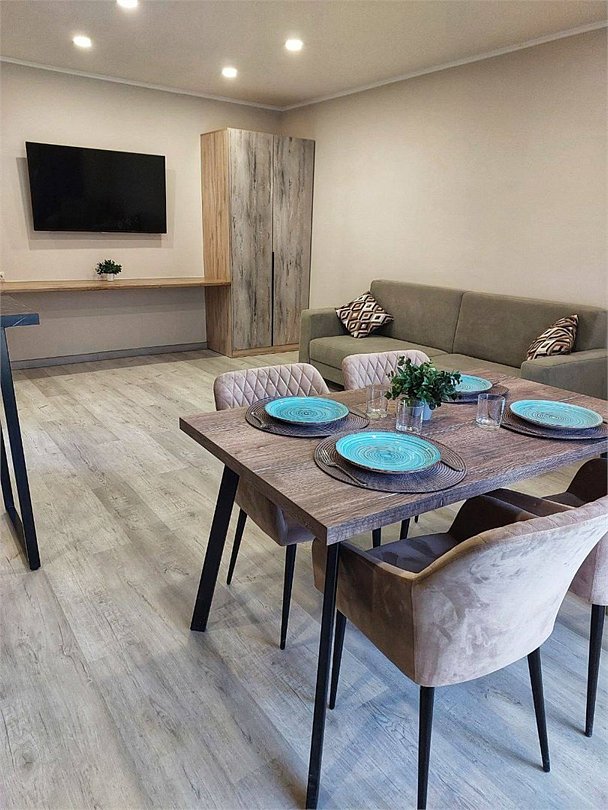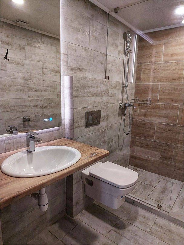 В номере: прихожая, стулья, комод, стол, телевизор, холодильник Санузел: туалет, умывальник, душ, пол с подогревом. В стоимость входит завтрак на двоих.Услуги и удобства