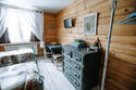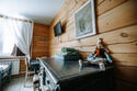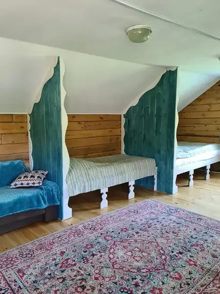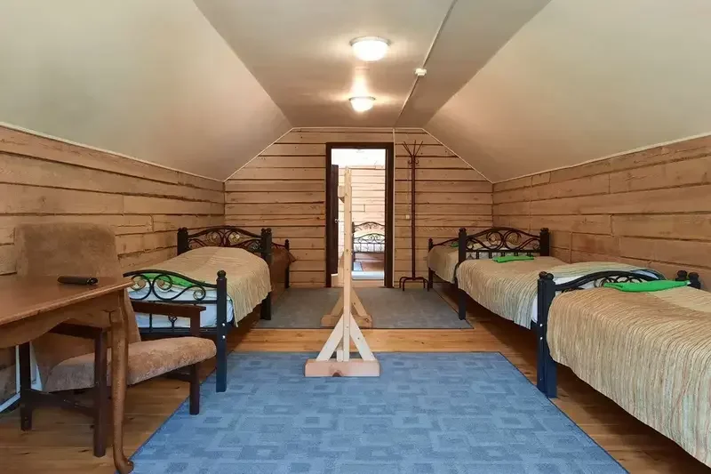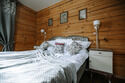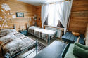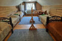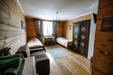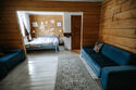 Отдельно стоящее здание с множеством спальных мест. Из окон вид на горы и лес. Есть балкон. В номере размещены кровати, телевизор со спутниковыми каналами, обеденный столик, холодильник, тумбочки, шкаф, санузел. А также есть гостиная зона и кухонные принадлежности.