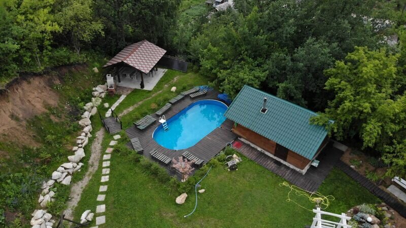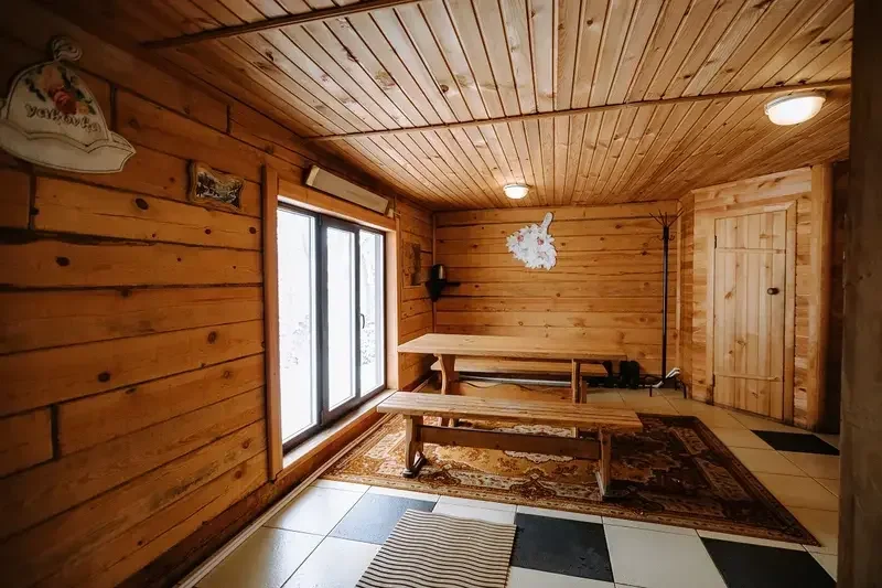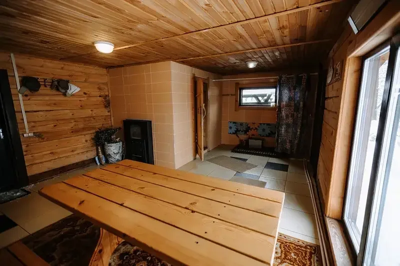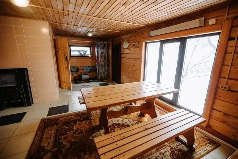 В стоимость бани входят простыни, веник (дубовый или березовый), чай травяной, мёд горный. Рядом есть сезонный открытый бассейн.