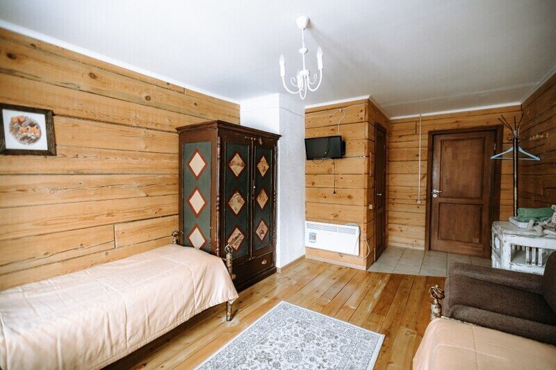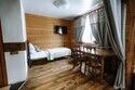 Двухместный номер, площадью 20 кв.м, с видом на горы и лес. В номере размещены 2 отдельные кровати и раскладное кресло-кровать, санузел, телевизор со спутниковыми каналами,столик. А также есть гостиная зона и кухонные принадлежности.