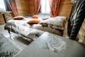 Двухместный номер, площадью 15 кв.м, с видом на горы и лес. В номере размещены 2 отдельные кровати, санузел, телевизор со спутниковыми каналами, столик. А также есть гостиная зона и кухонные принадлежности.