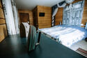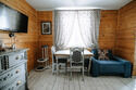 Двухместный номер, площадью 30кв.м, с видом на горы и лес. В номере размещены 1 двуспальная кровать, 1 отдельное кресло-кровать, тумбочки, комод, обеденный стол, телевизор со спутниковыми каналами, санузел. А также есть гостиная зона и кухонные принадлежности.