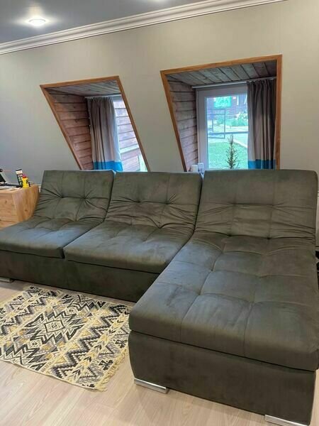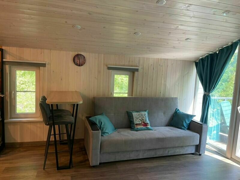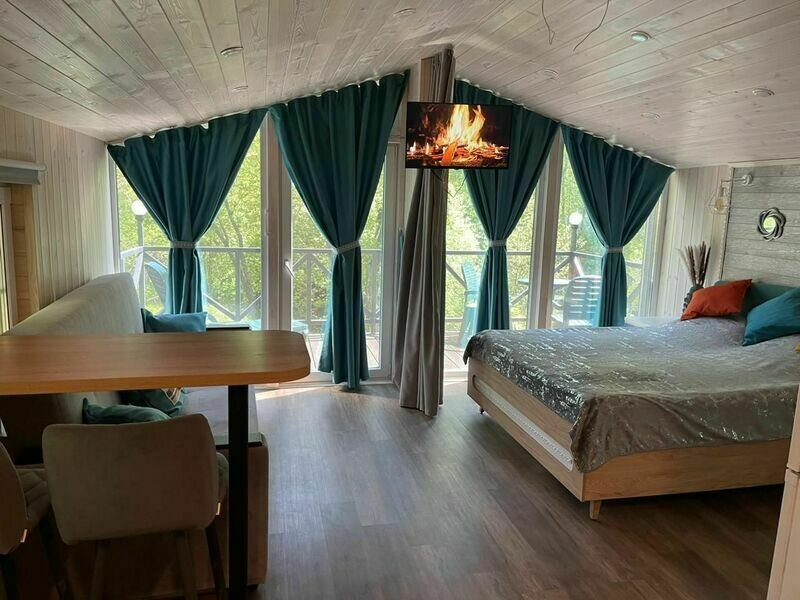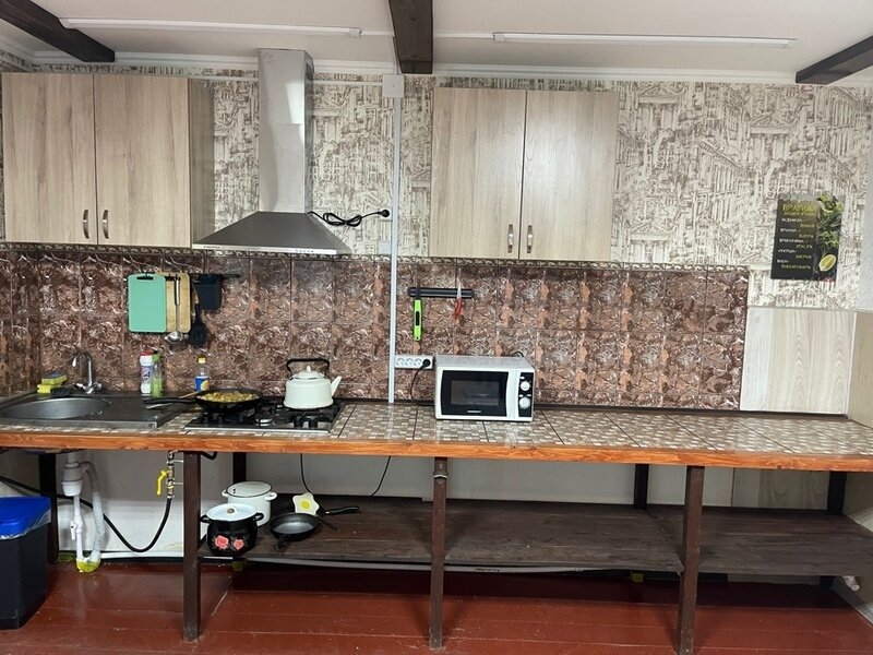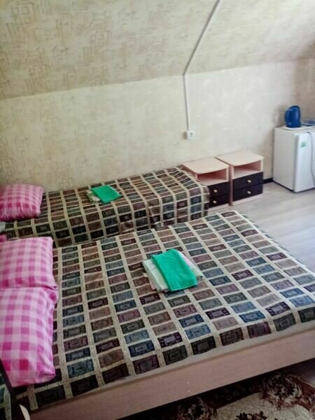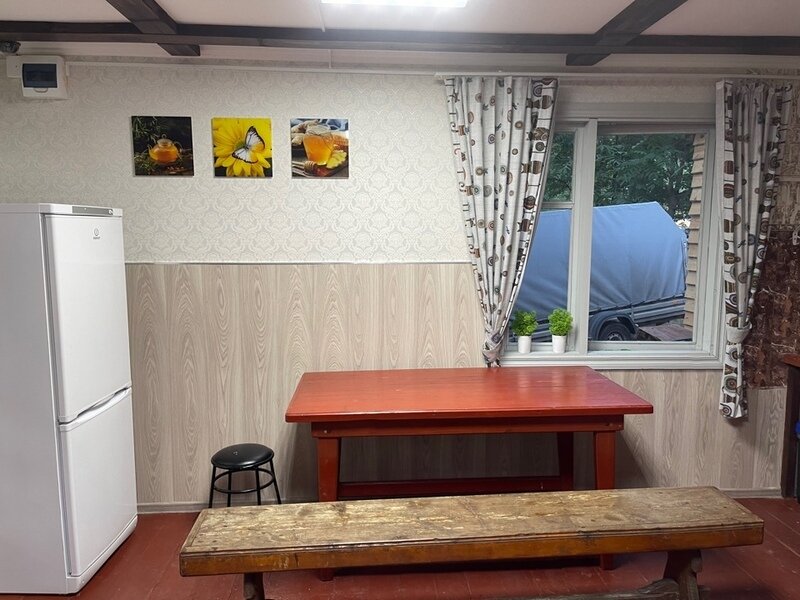 Благоустроенный трехкомнатный номер на двух этажах с кухней, санузлом и двумя телевизорами. В доме есть отопление, холодильник, вся необходимая посуда, плита, чайник, микроволновая печь, вытяжка. Подходит для комфортного отдыха с детьми или компанией.