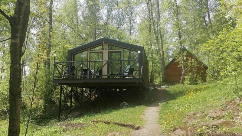 Отдельностоящие или сдвоенные с общей верандой домики. Площадь номера 14-16 м2.