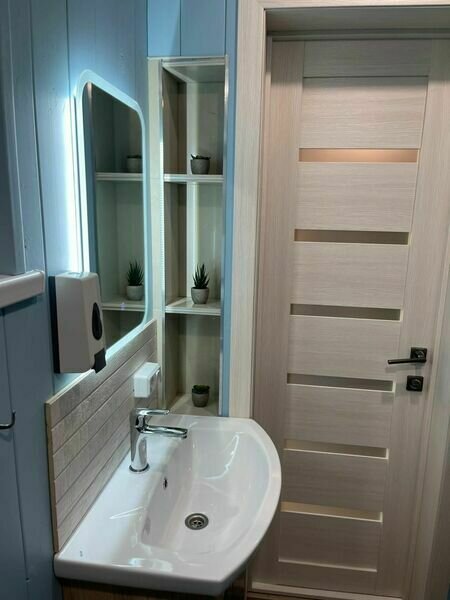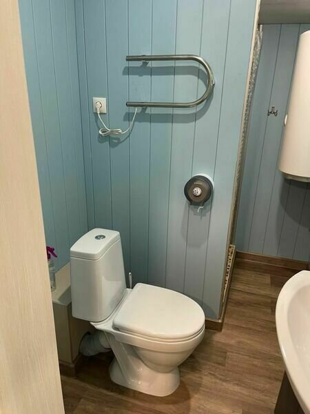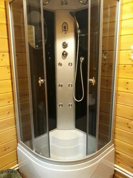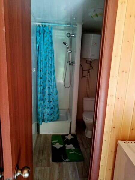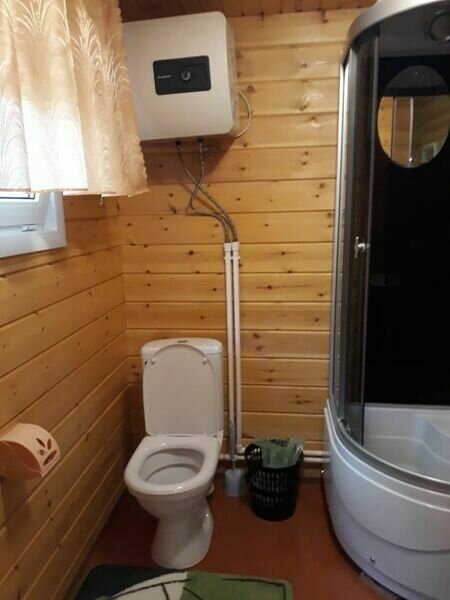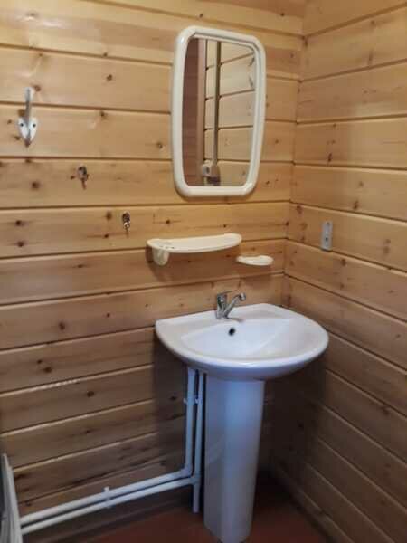 Санузел для категории Б2 расположен рядом с коттеджем в отдельном помещении один на 2 номера. В санузле: унитаз, раковина, душ, вода горячая и холодная.
