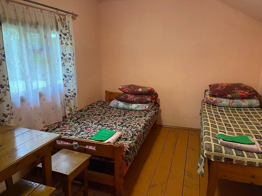 Летние неблагоустроенные домики, либо отдельностоящие, либо объединенные общей верандой. В каждом домике (номере) полутораспальная и односпальная кровать размером 120*195 и 80*195 см, столик, 2 табуретки, вешалка, зеркало, 1 розетка на 220 V.