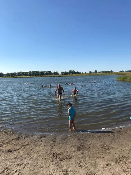 Недалеко от озер, пешком минут 10, на машине менее 5. Огороженная территория. Детская площадка, баня, мангал, лавочки, качели (очень крепкие, с моими 150+ кг. это важно). Удобные кровати и подушки, шея не болит. Домики удобные. мы очень довольны. По цене все устроило.