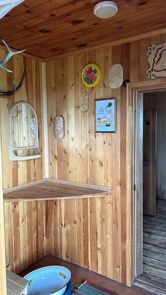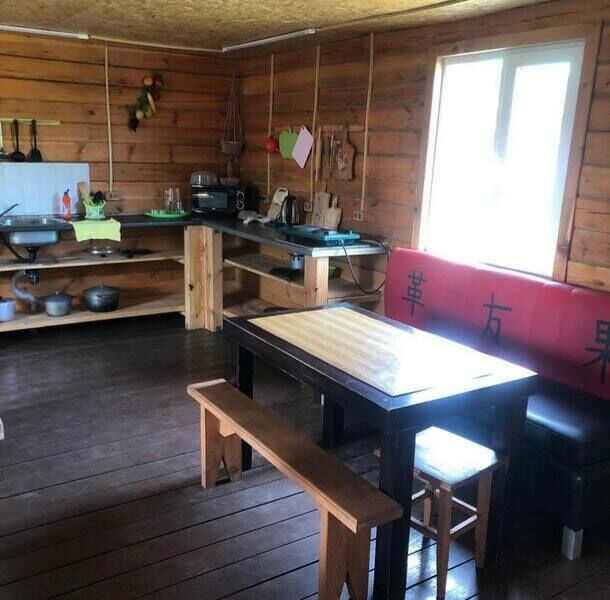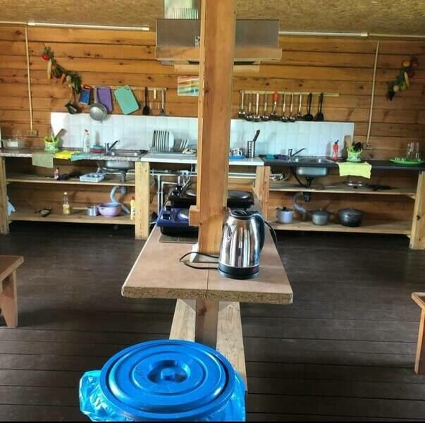 Дома на территории базы построены из натурального бруса, благодаря чему в них царит приятная прохлада даже в жаркие летние дни. Интерьер выполнен с использованием кедра, а кровати изготовлены из сосны, что создаёт атмосферу экологичности и наполняет воздух лёгким древесным ароматом.