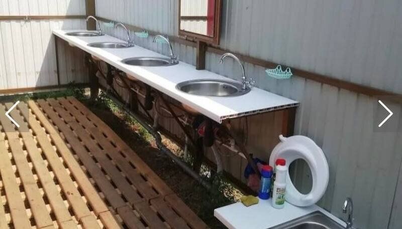 4 душевых кабинки, 4 туалетных комнаты, 5 умывальников.