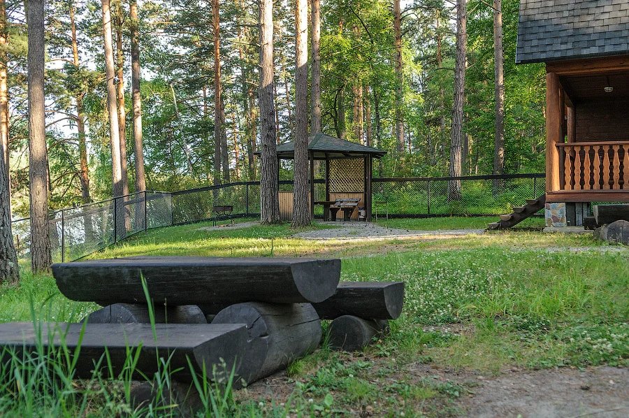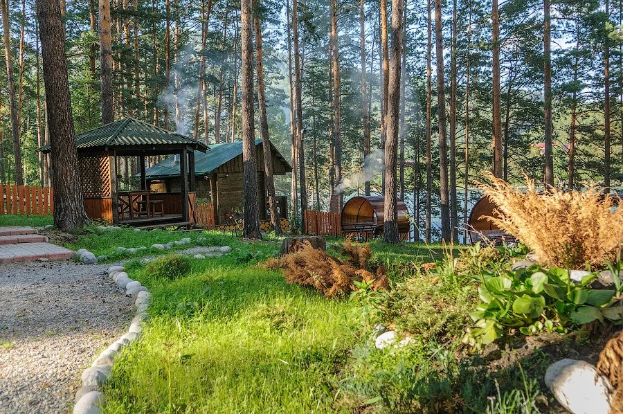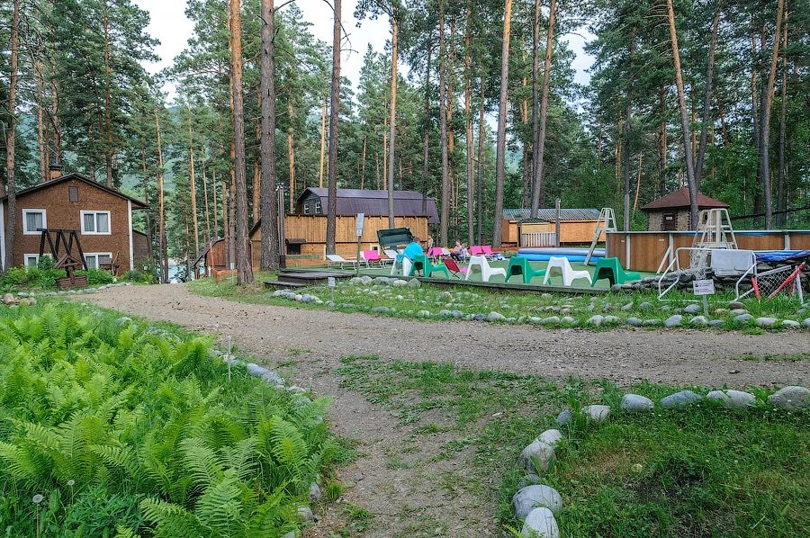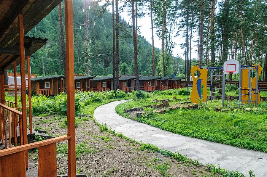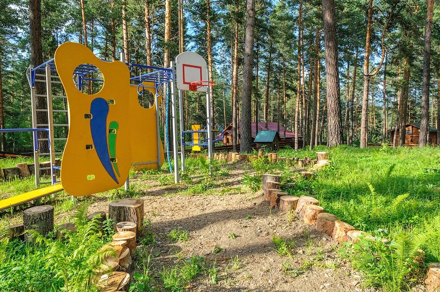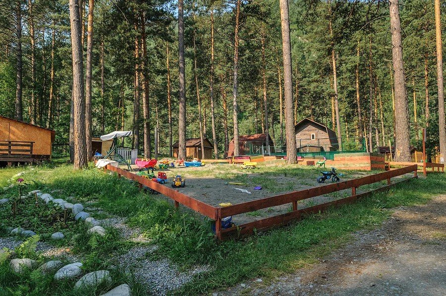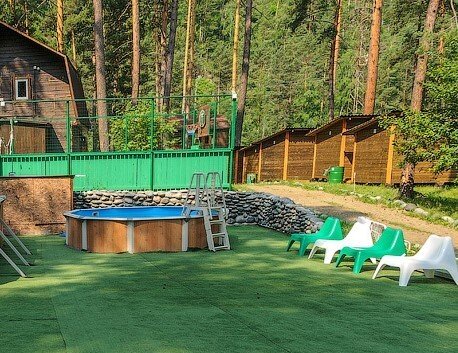 В распоряжении гостей две бани, одна из них с видом на Катунь и горячий банный чан на свежем воздухе. В летнее время устанавливаются два бассейна – взрослый и детский с подогревом. Работает клуб развлечений, можно поиграть в настольный теннис, аэрохоккей, бадминтон, в мяч, позаниматься в воркаут зоне. Для детей обустроена игровая комната в помещении и детская площадка на улице.