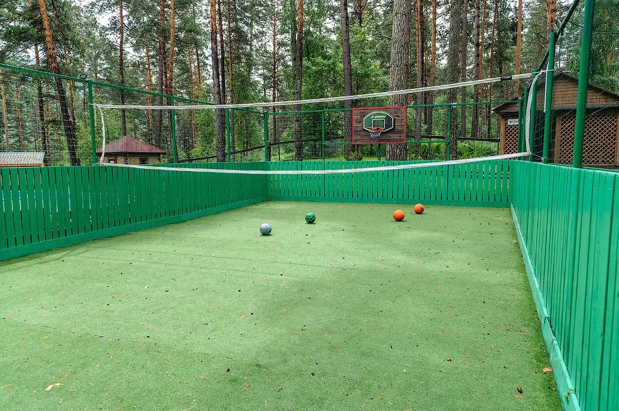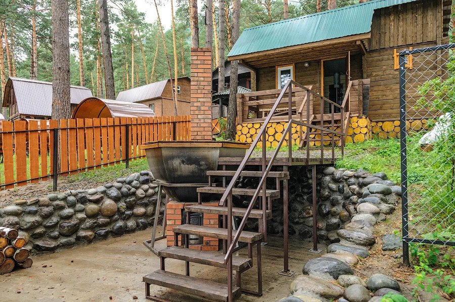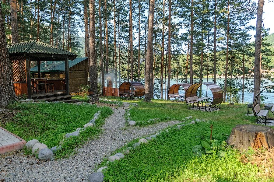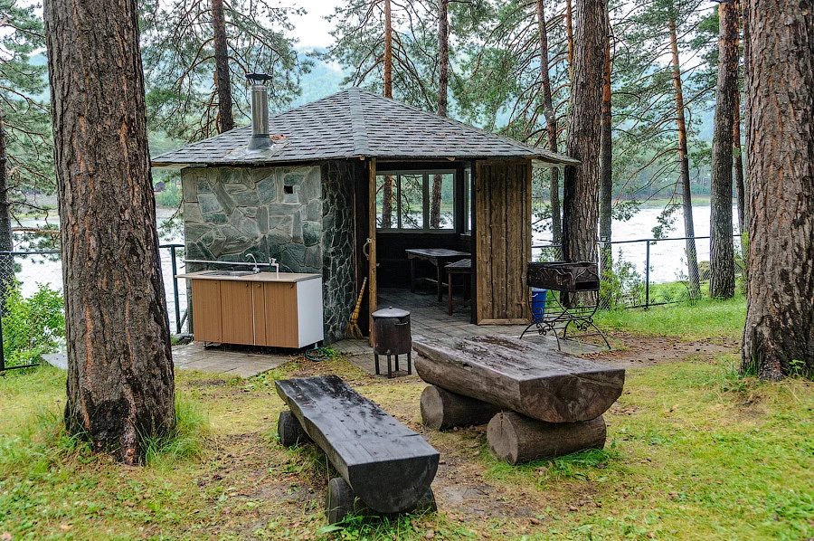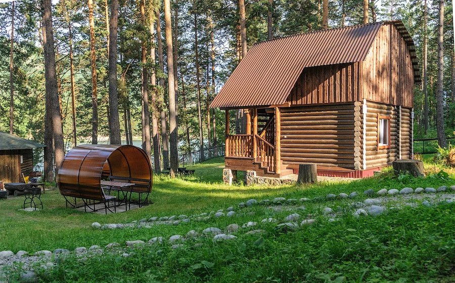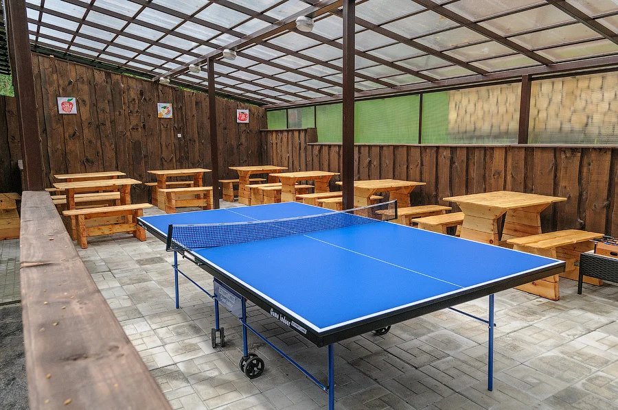 В распоряжении гостей две бани, одна из них с видом на Катунь и горячий банный чан на свежем воздухе. В летнее время устанавливаются два бассейна – взрослый и детский с подогревом. Работает клуб развлечений, можно поиграть в настольный теннис, аэрохоккей, бадминтон, в мяч, позаниматься в воркаут зоне. Для детей обустроена игровая комната в помещении и детская площадка на улице.