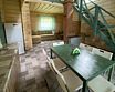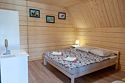 Трехкомнатный номер на 2 этаже двухэтажного коттеджа. Три двуспальные кровати, кухонная зона, чайник, микроволновая печь, холодильник, с/у с душевой.