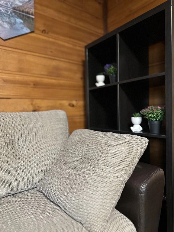 Имеется большая 2-спальная кровать на 2-ом этаже и раскладывающийся диван на 1-ом, 1-спальная кровать — на доп. месте. Наслаждайтесь красивым видом из окна и пользуйтесь удобствами — телевизором с плоским экраном.