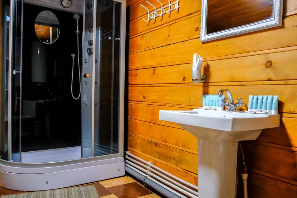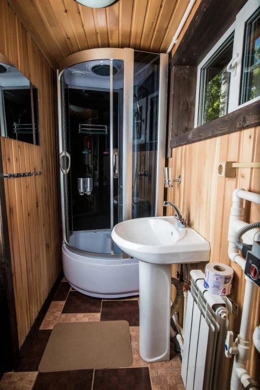 Внутри предусмотрены комнаты для отдыха, отдельная мойка и парилка.