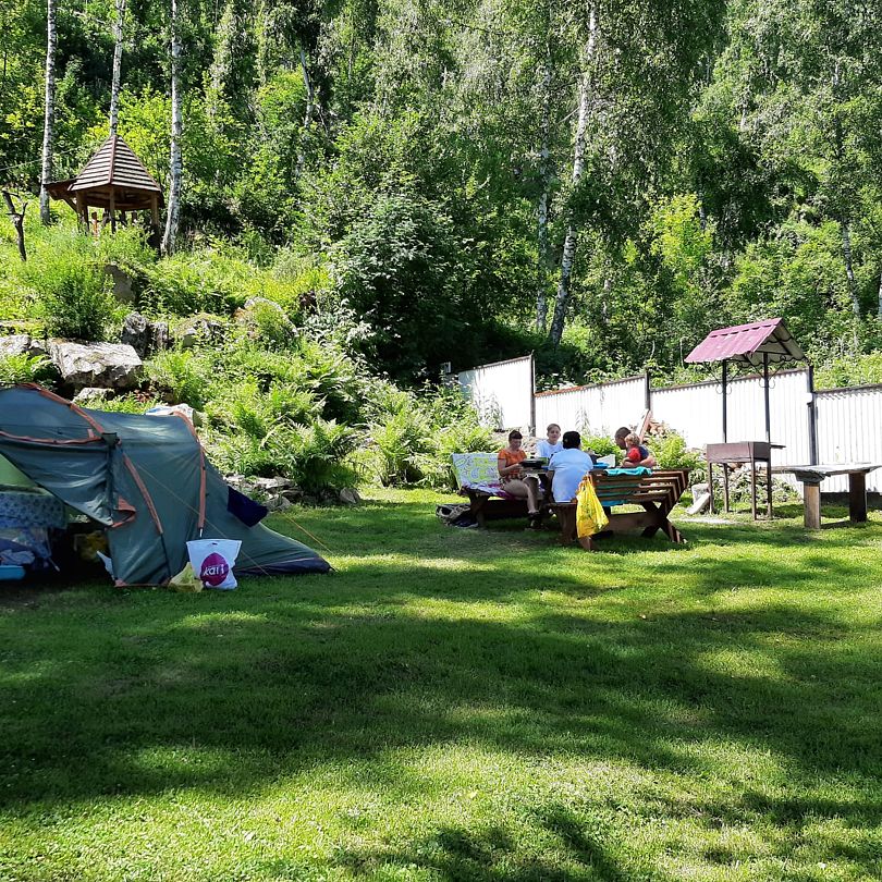 Туристическая база «Сказка» расположена в березовом лесу прямо на склоне горы. Подходит для спокойного семейного отдыха с детьми. В уютной и приятной атмосфере можно скрыться от шумных развлекательных мероприятий, предлагаемых на других базах и полноценно отдохнуть от городской суеты.