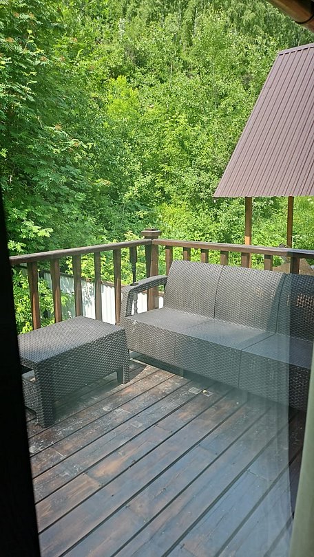 В любое время можно посетить отдельно кедровую баньку с комнатой отдыха с видом на скалы, берёзовый веник вылечит Вас от всех недуг.