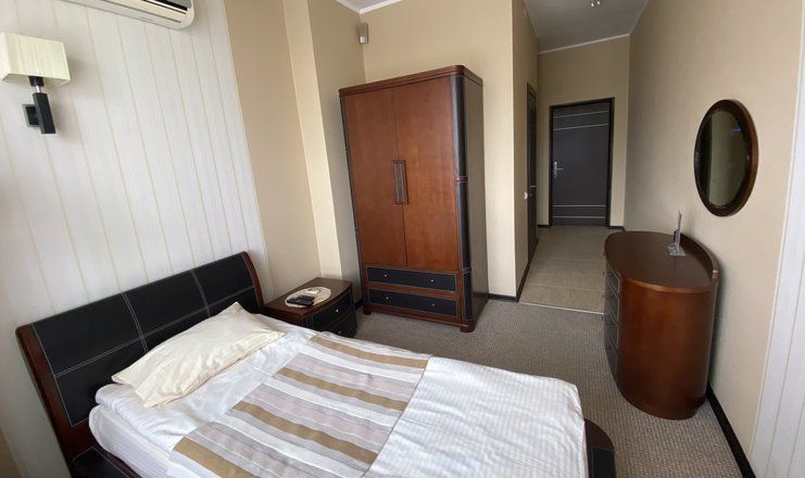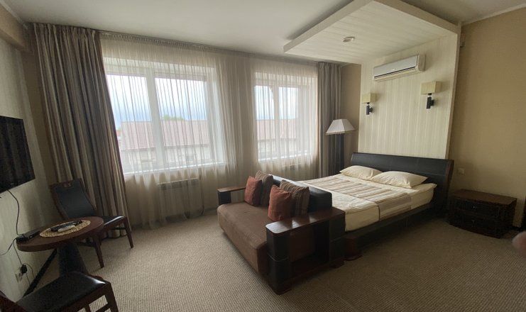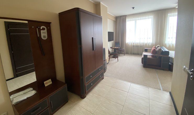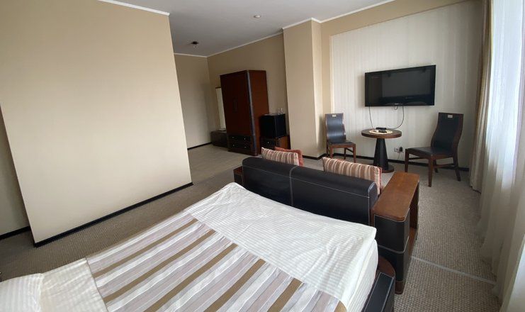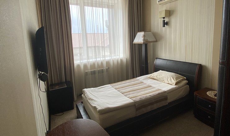 Уютный однокомнатный номер, площадью 30 кв. м, включает в себя спальню с двуспальной кроватью и рабочей зоной, ванную комнату с душем. Номер оснащен кондиционером, мини – баром, телефоном, феном, спутниковым телевидением.