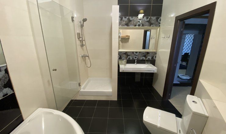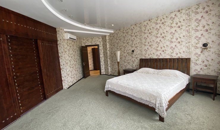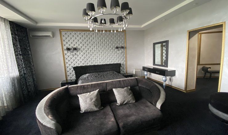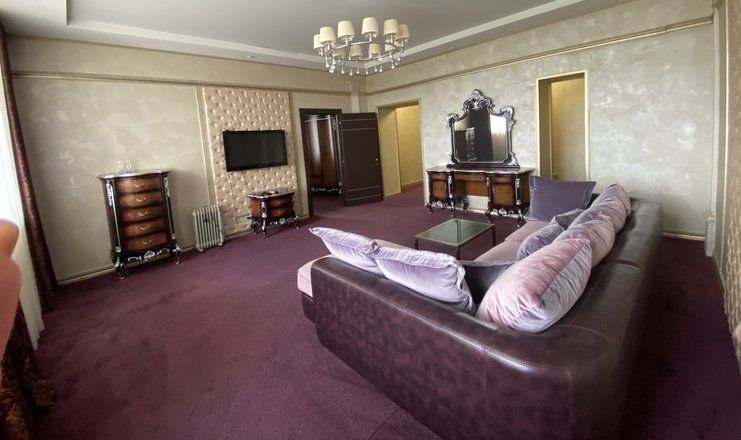 Роскошный трехкомнатный номер, площадью 115 кв. м, включает в себя гостиную, две спальни с двуспальной кроватью, две ванные комнаты, два санузла. Номер оснащен кондиционерами, мини-барами, телефонами, фенами, спутниковым телевидением.