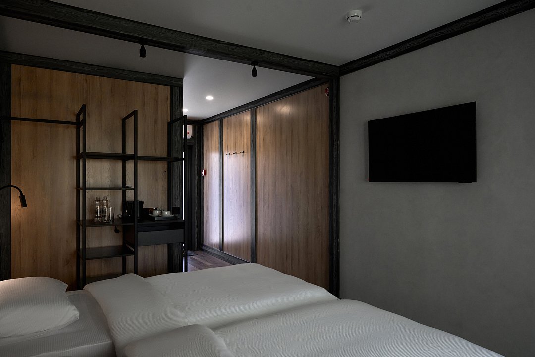 Стандартный номер с двумя односпальными кроватями в модульном корпусе.